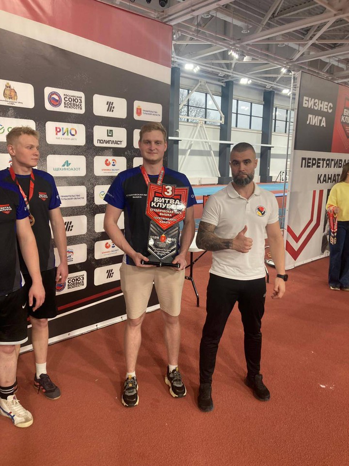 12 ноября в Туле состоялись соревнования по перетягиванию каната в рамках регионального спортивного проекта «Битва клубов». Сборная НИ РХТУ показала высокие результаты и в упорной борьбе заняла 3 место среди 16 команд!