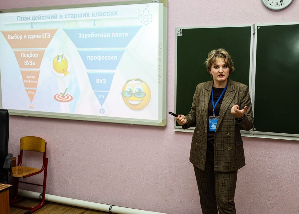 Они снова встретились с учениками старших классов, чтобы рассказать о возможности получить качественное высшее образование в тандеме с работодателем, а затем, после вуза, - устроиться на работу.