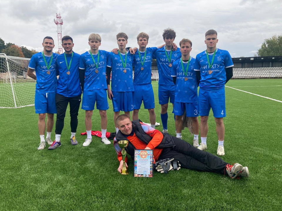 23 сентября завершилось первенство города Новомосковска по мини-футболу среди профессиональных и высших учебных заведений. Команда НИ РХТУ достойно выступила в турнире: в упорной борьбе уступив в решающем матче чемпиону – команде УОР ТО со счётом 3:4, наши футболисты заняли 3 место!