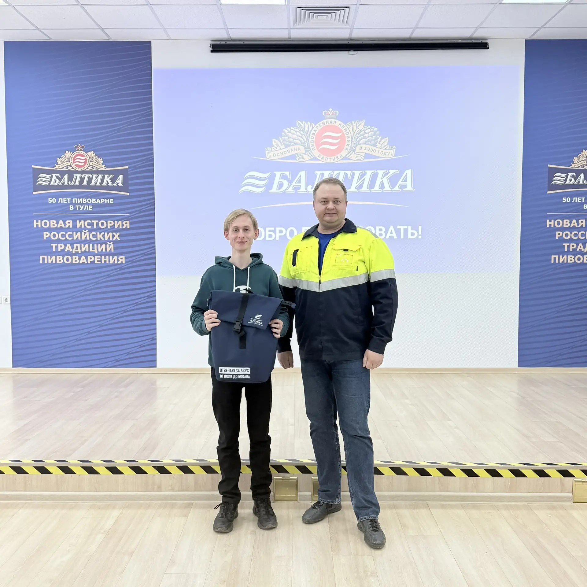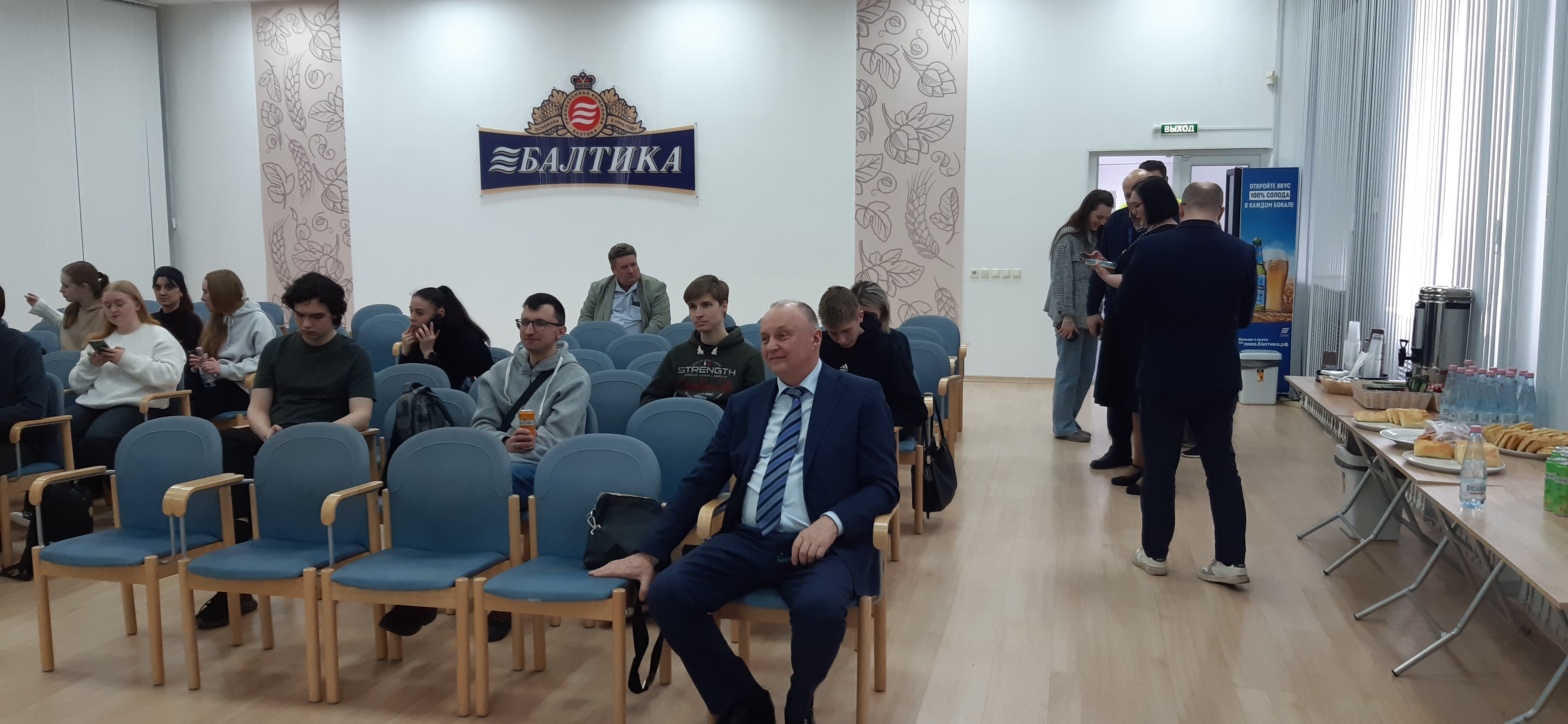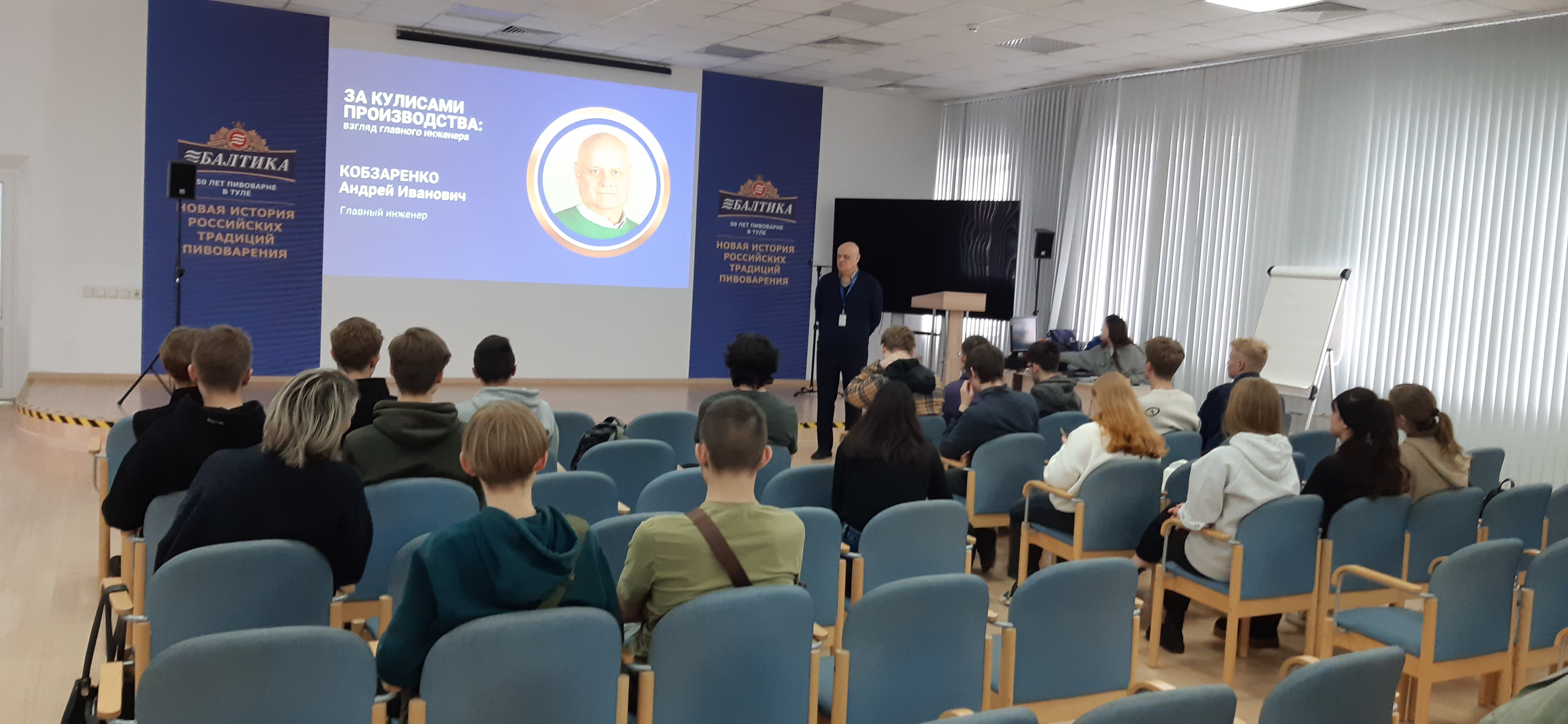 С презентацией о компании: истории бренда, традициях пивоварения и современном производстве, — выступили руководитель направления по развитию локальных брендов — Наумов Денис Валерьевич, главный энергетик — Гладков Алексей Александрович, начальник лаборатории — Ильина Наталия Ивановна.