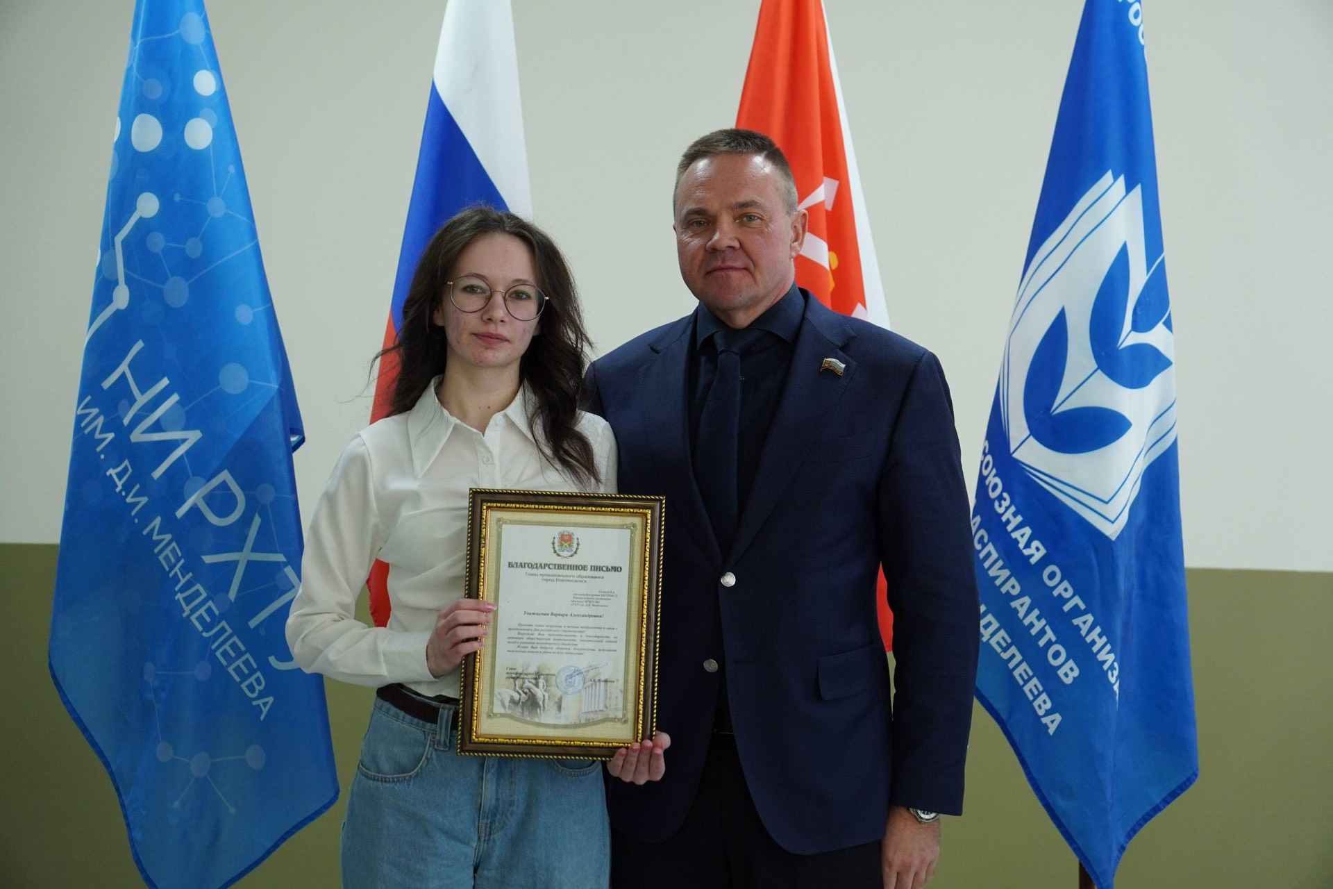 — от ректора РХТУ им. Д. И. Менделеева Филатова С. Н. — за большой личный вклад в развитие института;