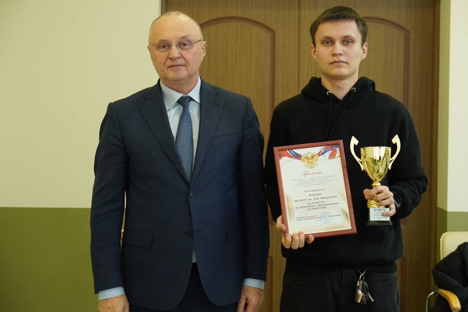 Сборной команде Новомосковского института за 3 место в Первенстве города по полиатлону среди студенческих команд, кубок и грамоту директор вручилСмирнову Ивану.