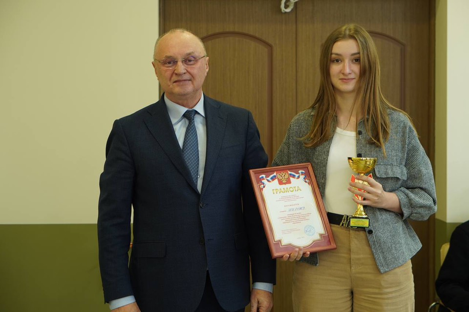 Сборная института заняла 2 место в Первенстве города по волейболу среди студенческих команд девушек, директор института вручил кубок и грамоту Арнгольд Виктории.