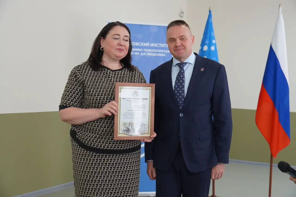 С тёплыми словами поздравлений к сотрудницам института обратился глава муниципального образования город Новомосковск – Алексей Валерьевич Платонов, который поблагодарил женщин за их труд, профессионализм и вклад в развитие образования, науки, общественной жизни и активную гражданскую позицию и вручил Благодарственные письма.