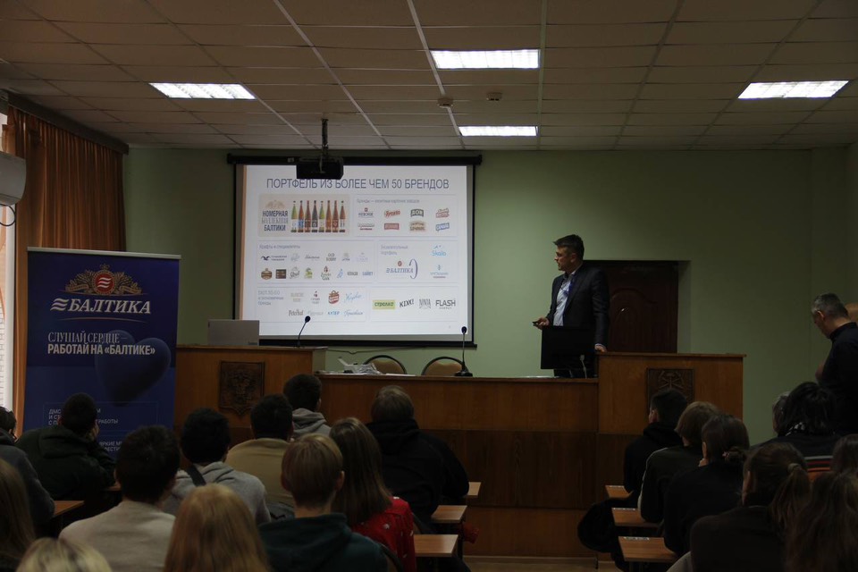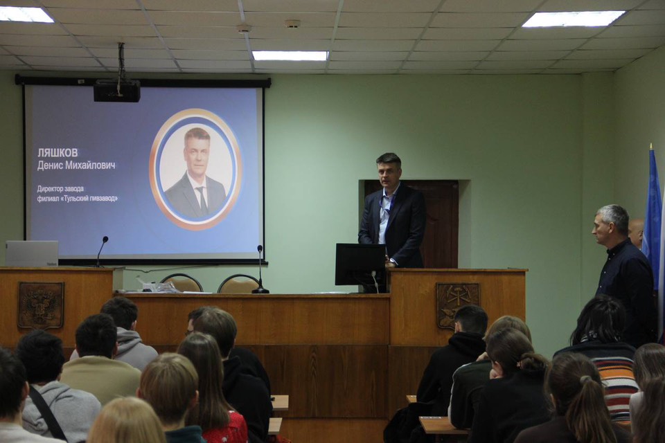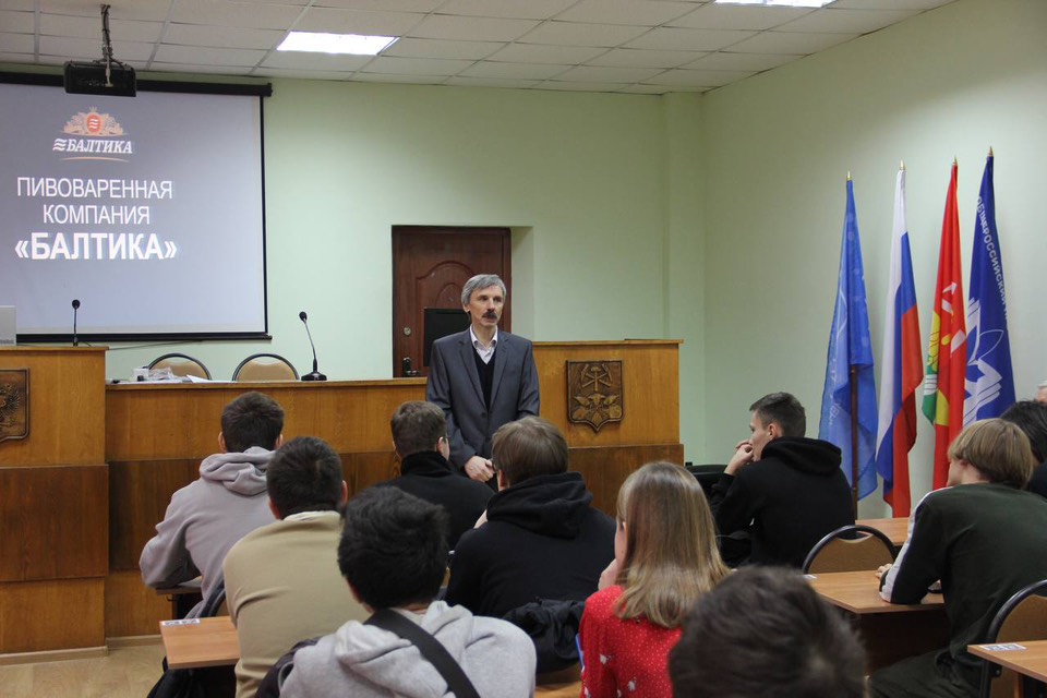 В ходе презентации представители компании рассказали о структуре группы «Балтика», деятельности Тульского завода, особенностях производства, условиях работы, программах стажировок и практики, а также о возможностях профессионального и карьерного роста для молодых специалистов.